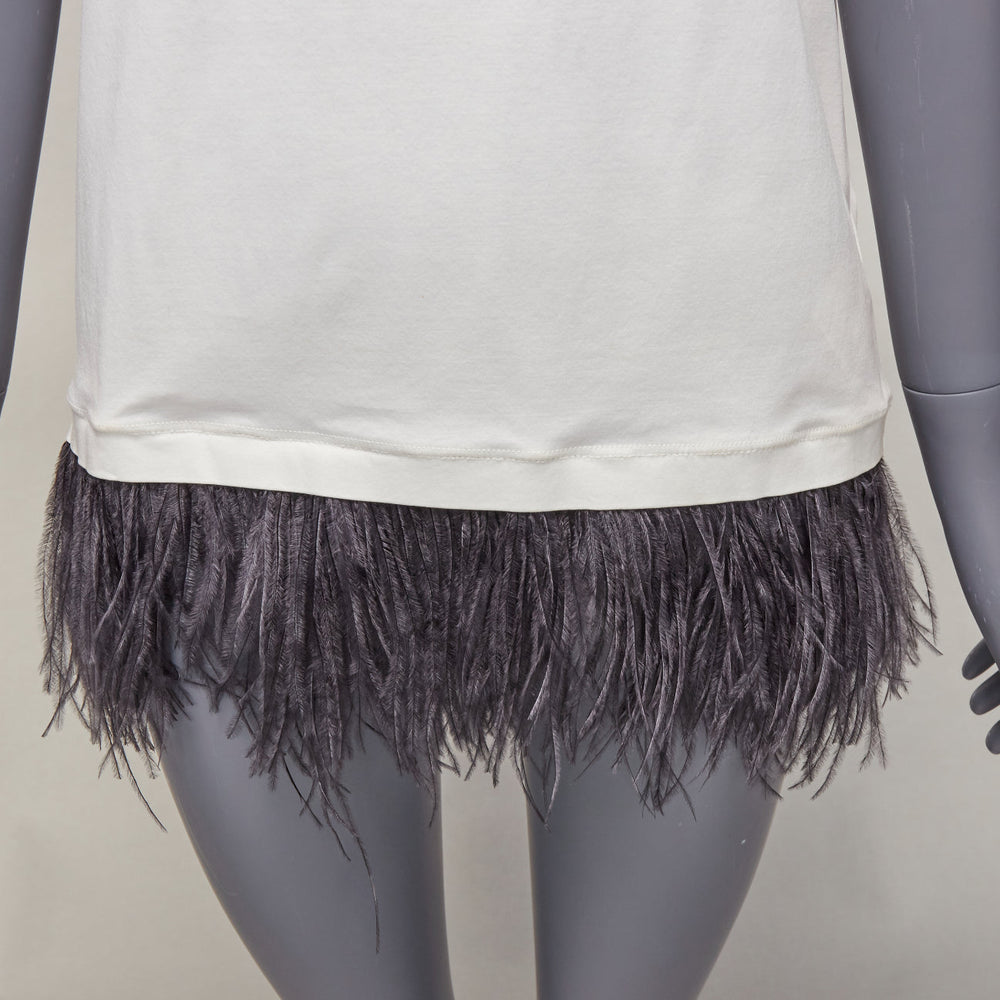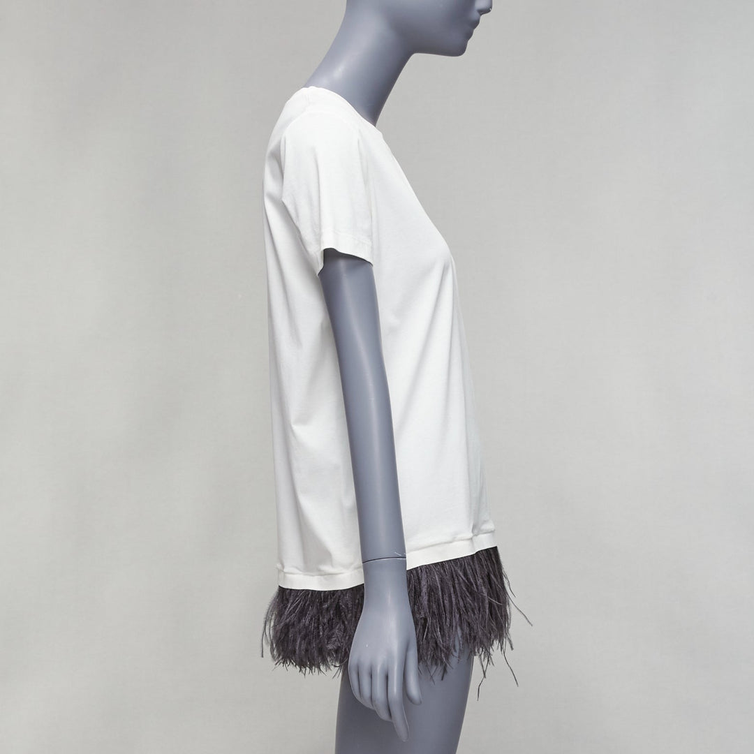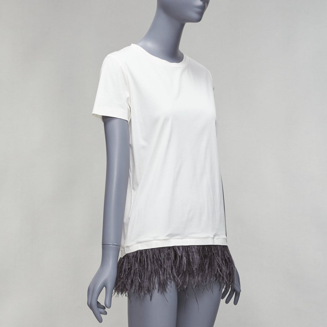 JIL SANDER white cotton black ostrich feather trim crew neck tshirt S