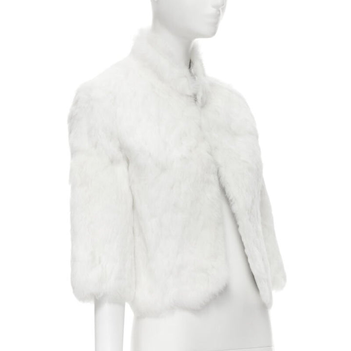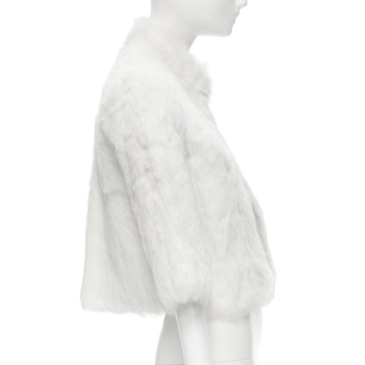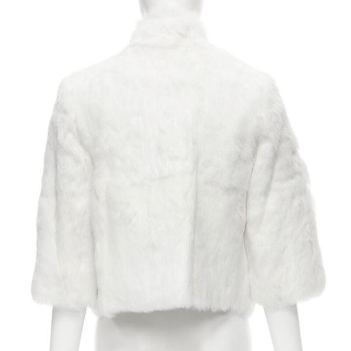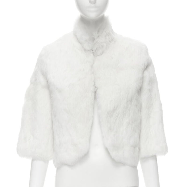 MATTHEW WILLIAMSON white natural fur 3/4 sleeve cropped jacket UK8 S