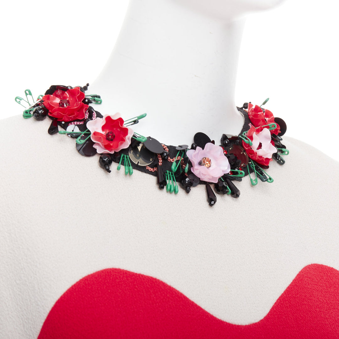 MSGM red nude floral embellished collar peplum vest top IT42 M