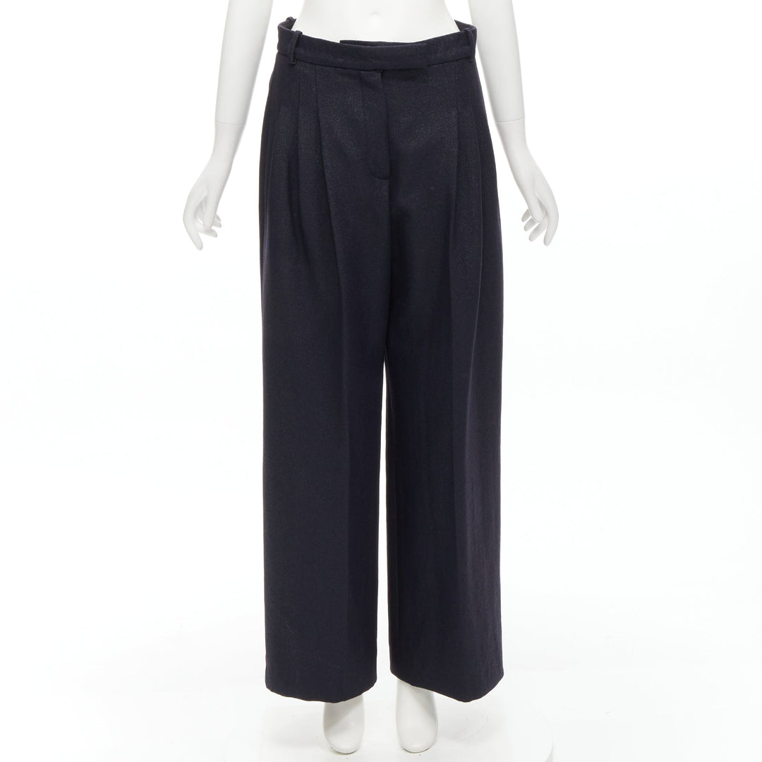 CHANEL metallic black pleated front chain trimmed wide leg pants FR40 M