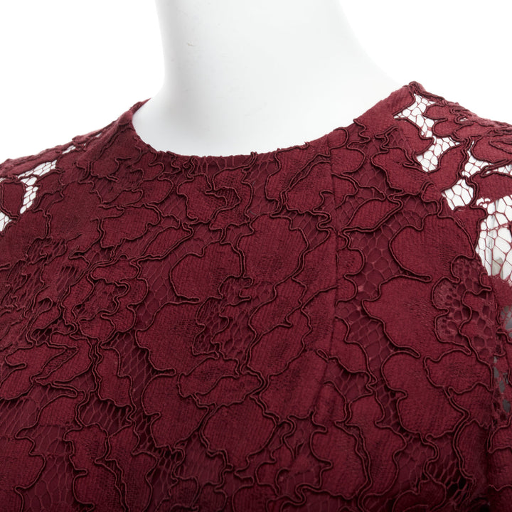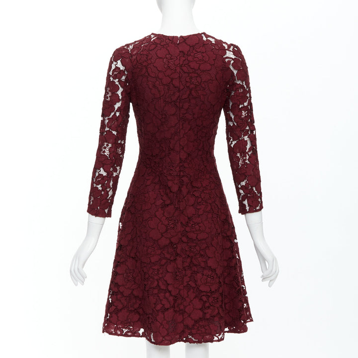 OSCAR DE LA RENTA 2016 burgundy lace sheer sleeves fit flare dressUS0 XS