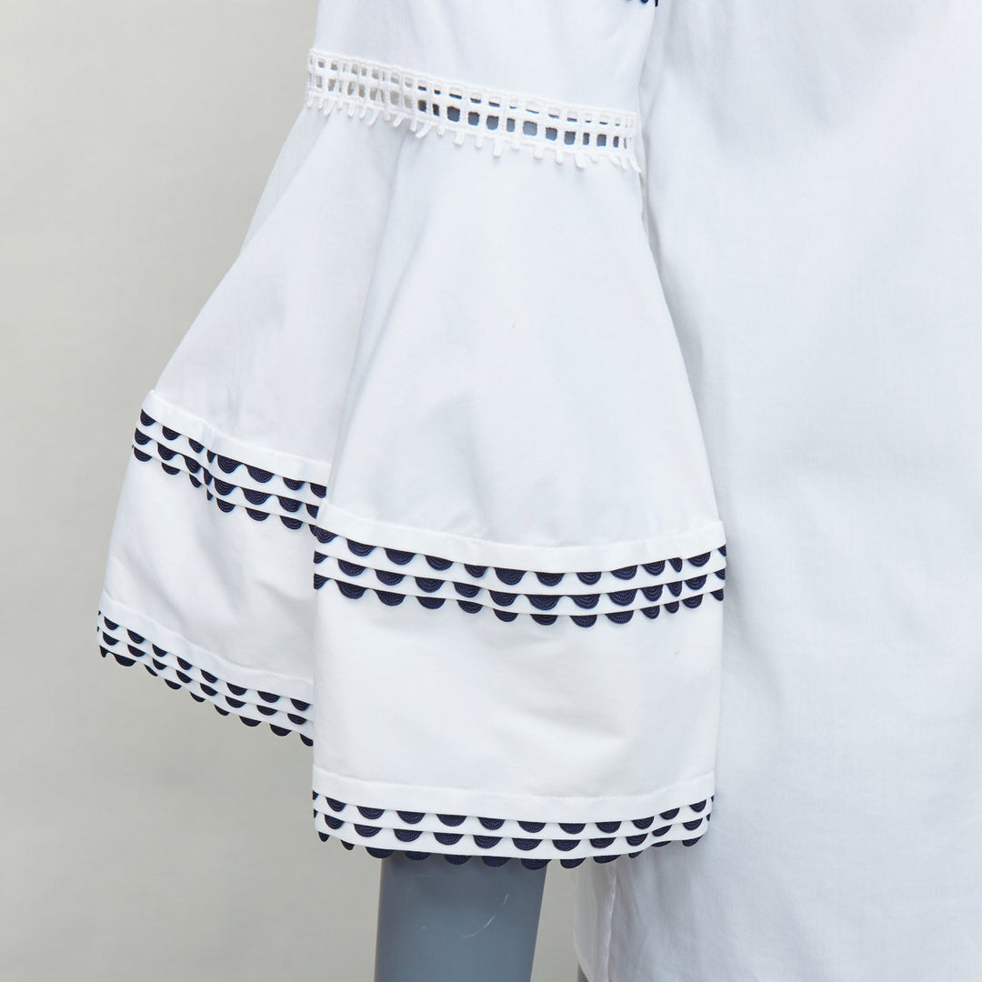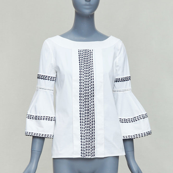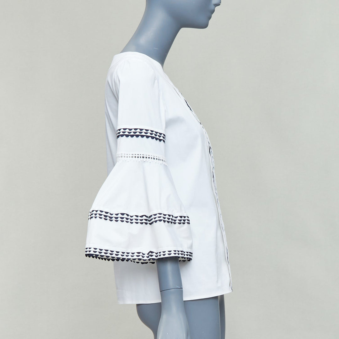 OSCAR DE LA RENTA P17 cream black scallop trim flared sleeve top US4 S