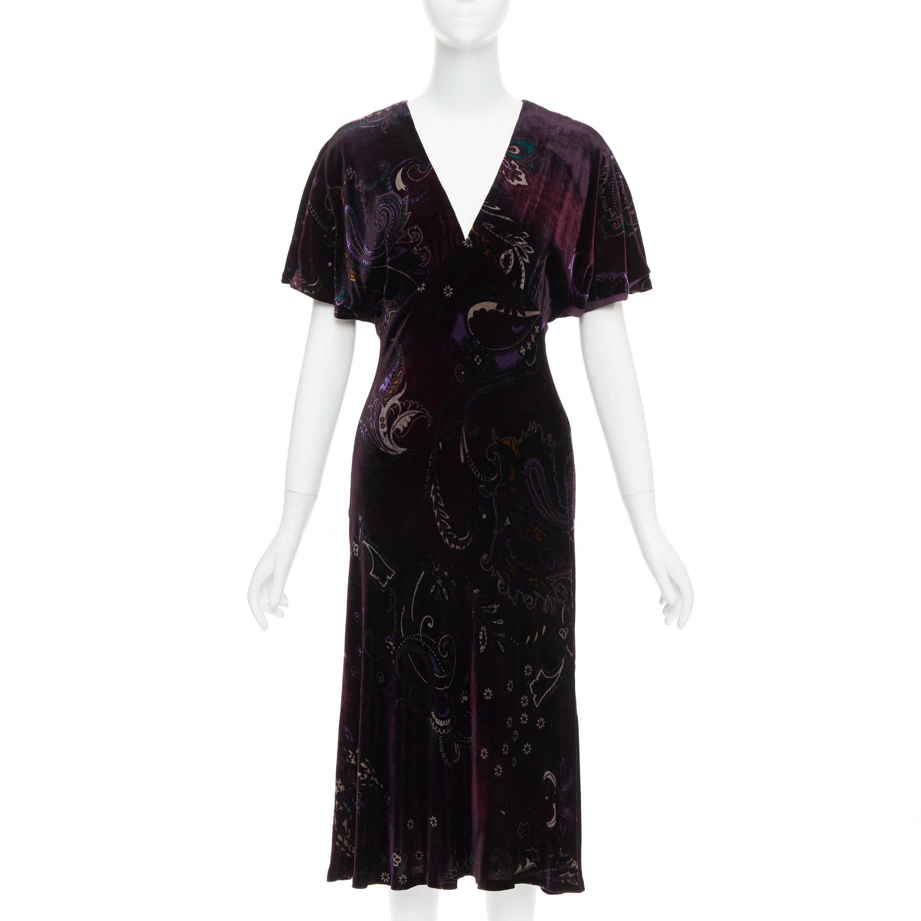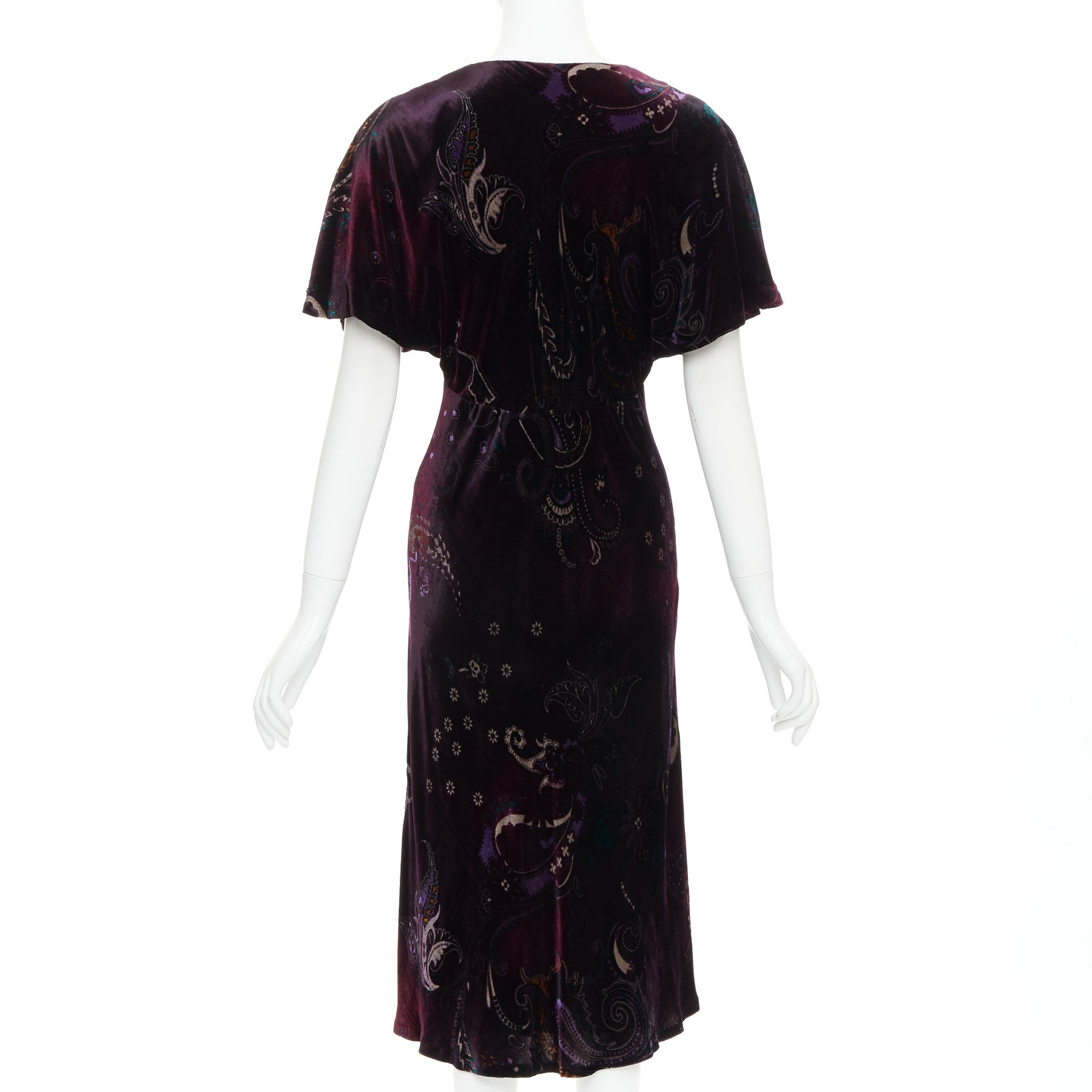 RALPH LAUREN Black Label Vintage dark purple velvet paisley floral print dress US8 L