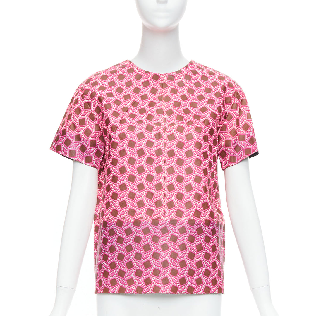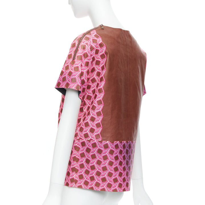 rare LOUIS VUITTON leather pink enlarged lattice lace print boxy top FR36 S