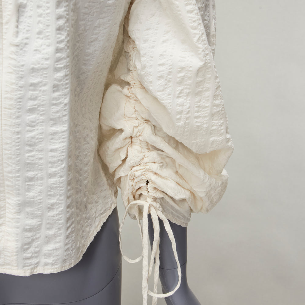 REGINA PYO cream cotton square neck ruched puff sleeves cropped peasant top S