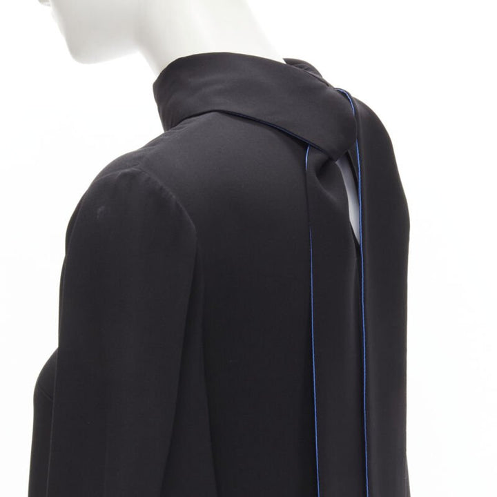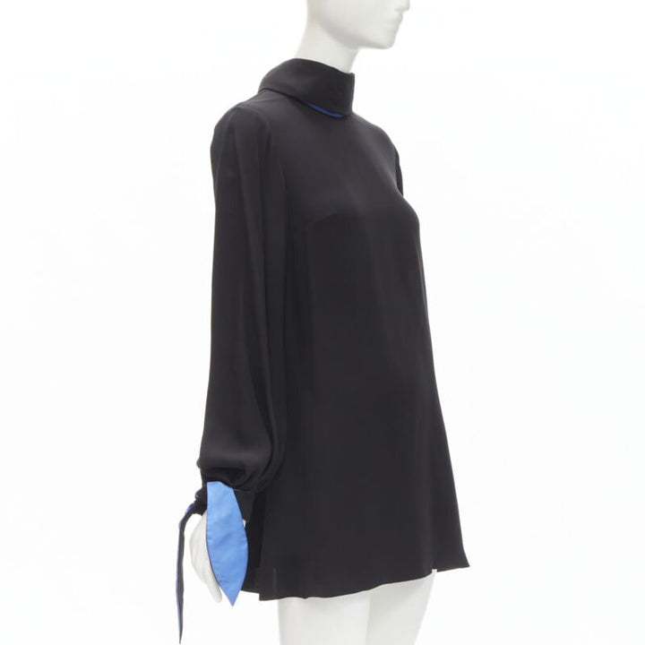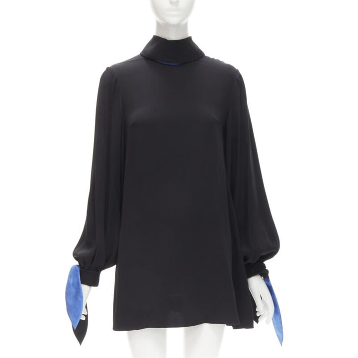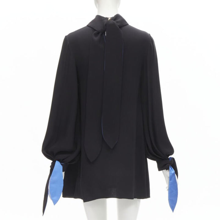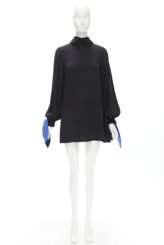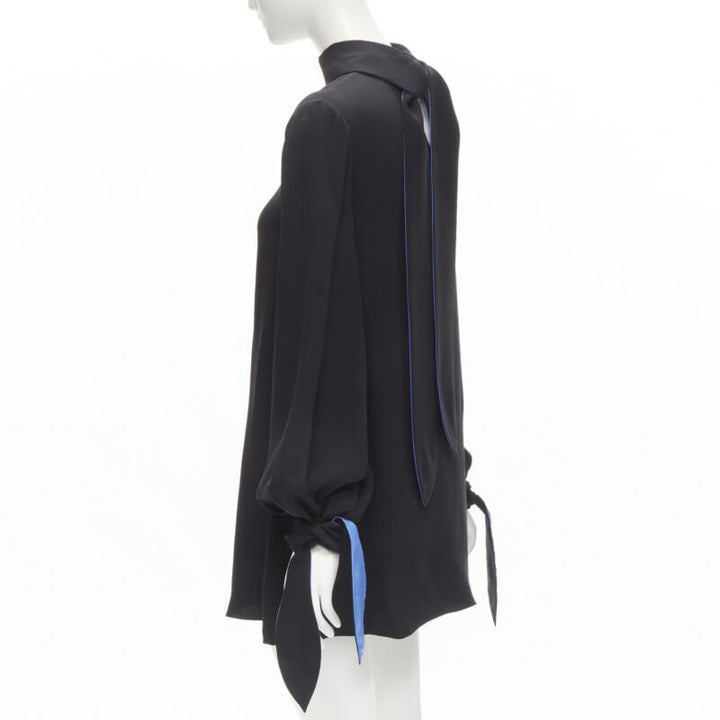 ROKSANDA 100% silk black blue bow tie cuff tunic dress UK8 S