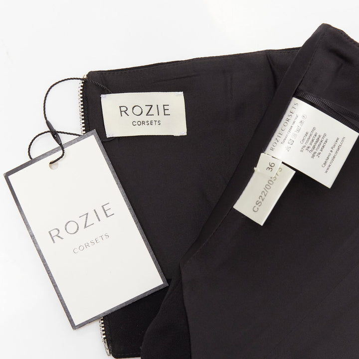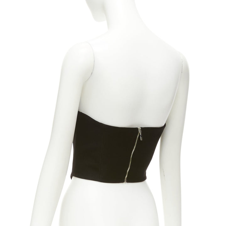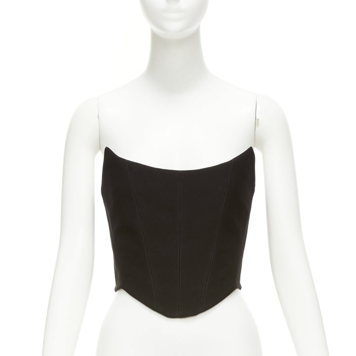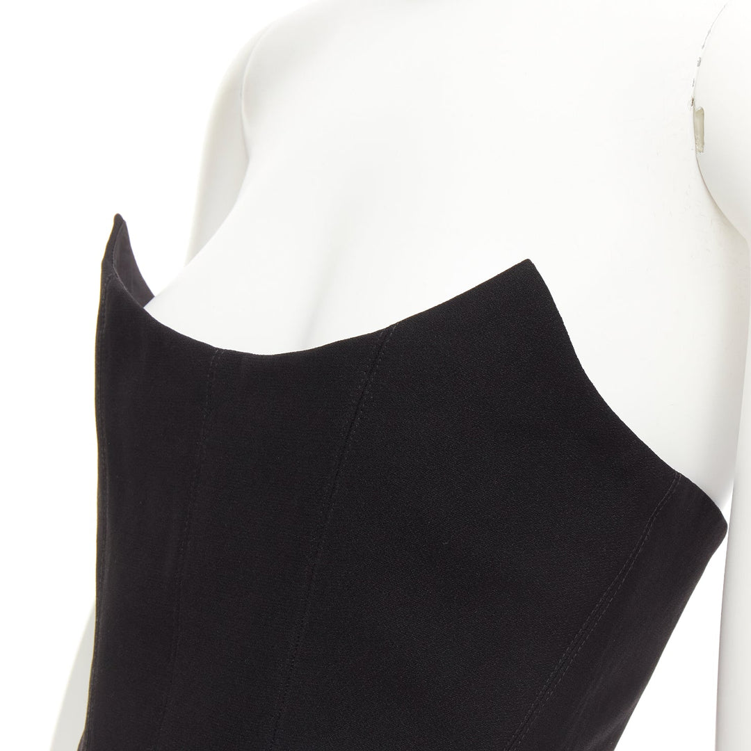 ROZIE black pointed neckline boned cropped corset bustier top FR34 XS