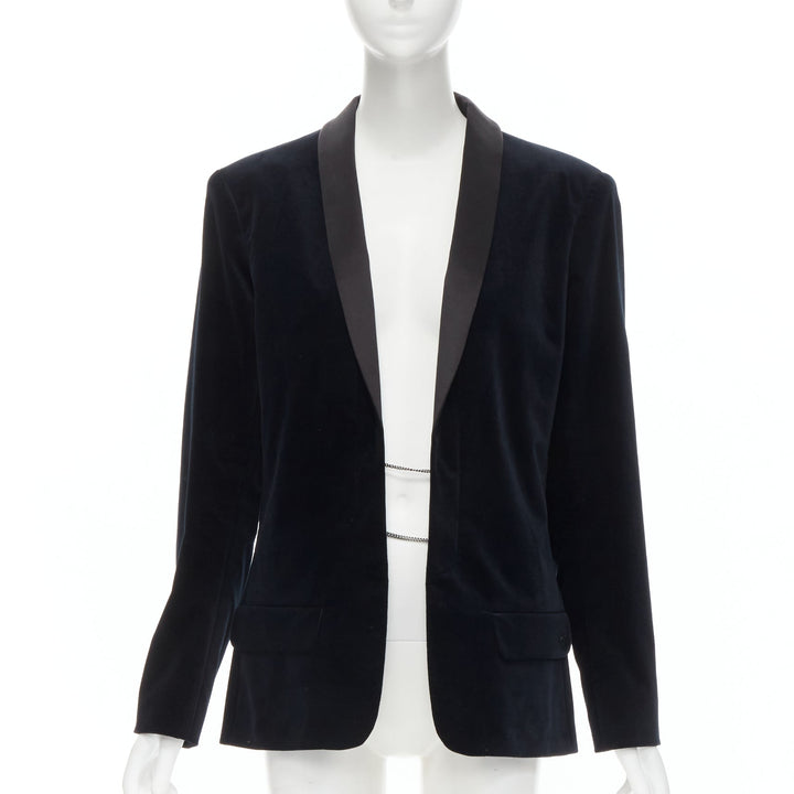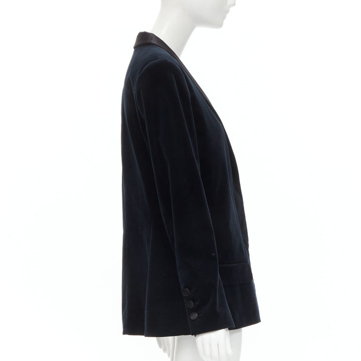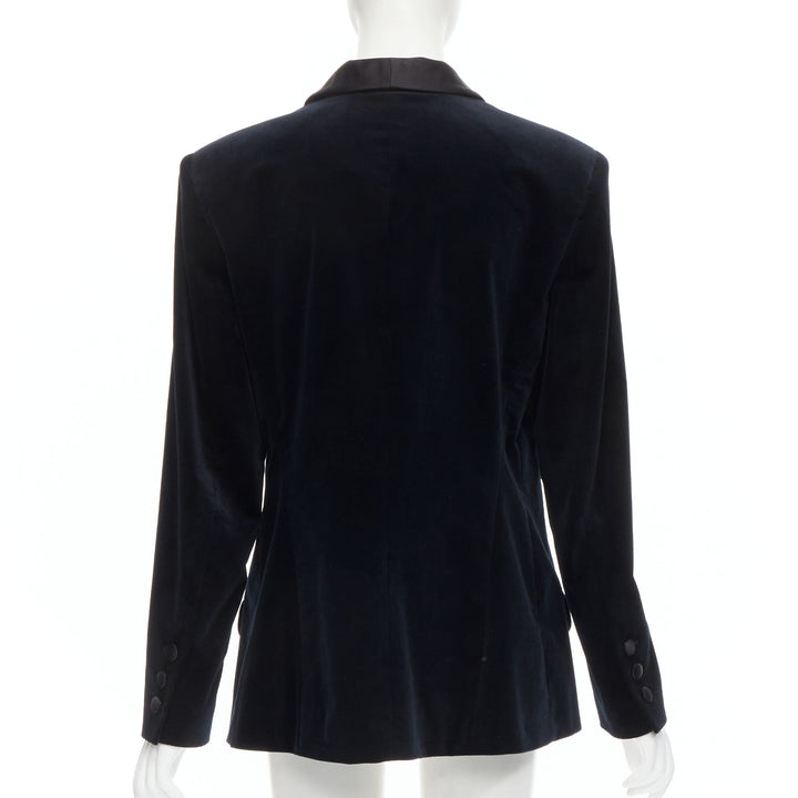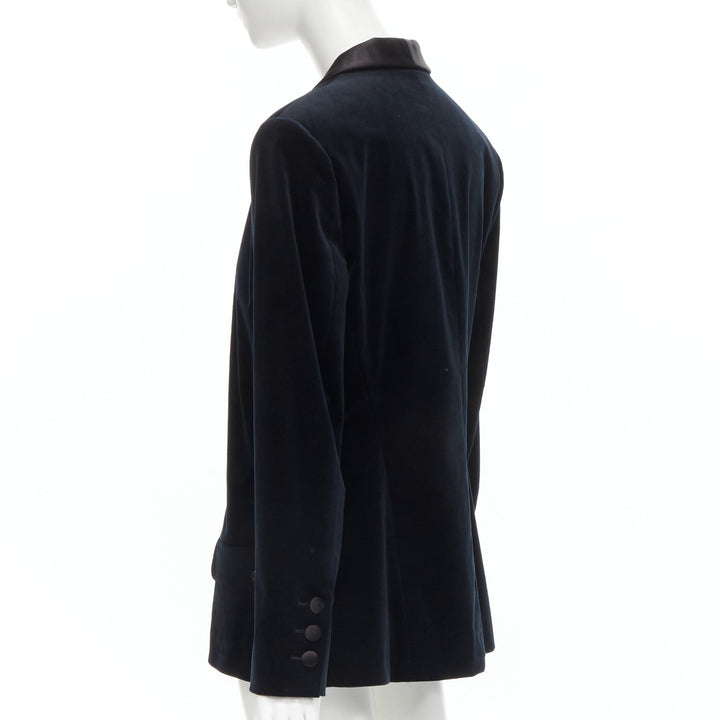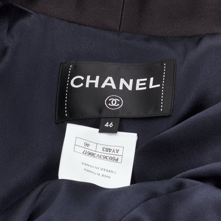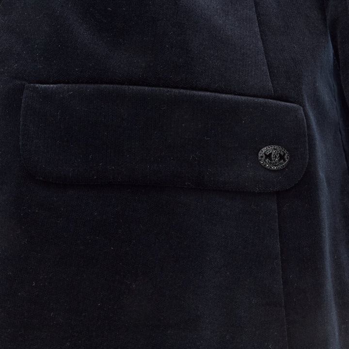 CHANEL 18A Paris Hamburg Metier D'art navy velvet satin lapel tuxedo blazer FR46