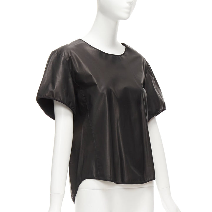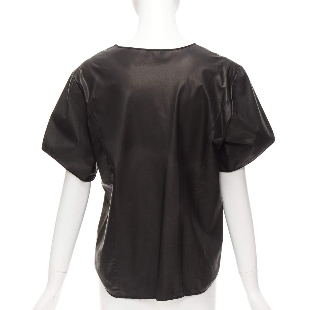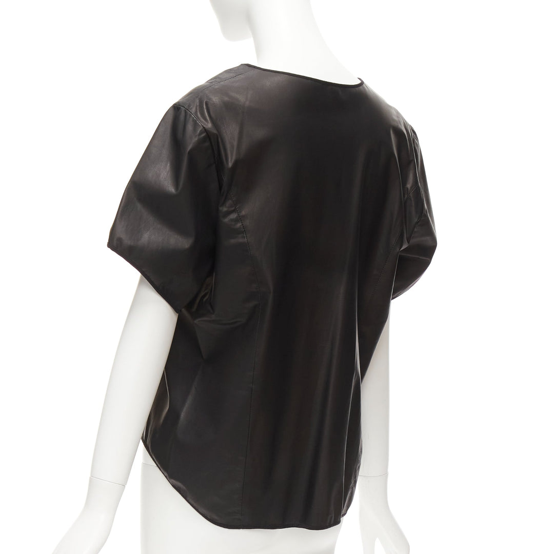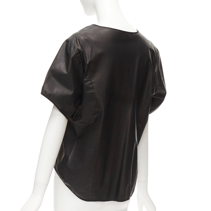 THEYSKENS THEORY black 100% calf leather 3D flare sleeve hi low hem top S