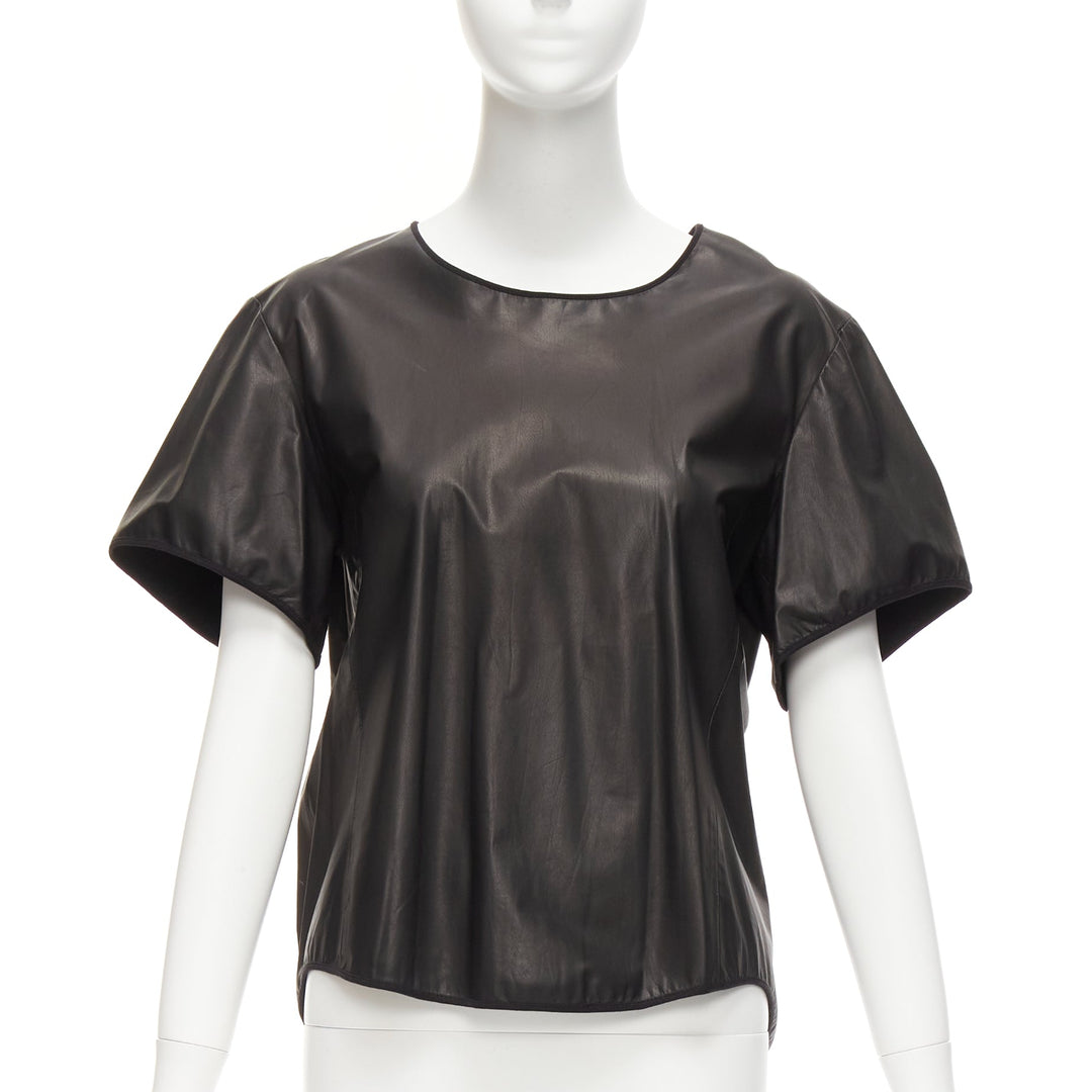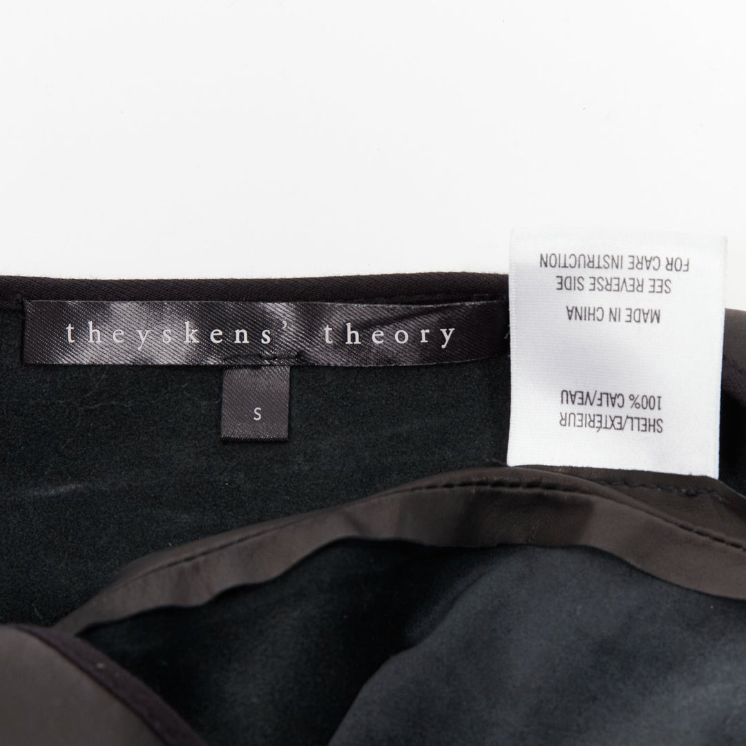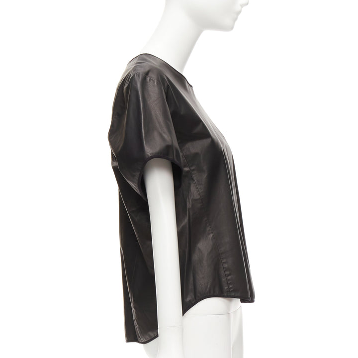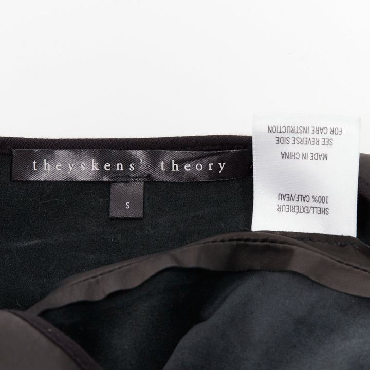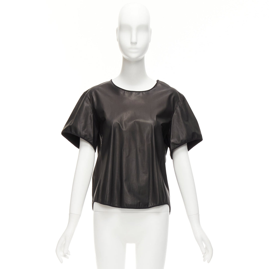 THEYSKENS THEORY black 100% calf leather 3D flare sleeve hi low hem top S